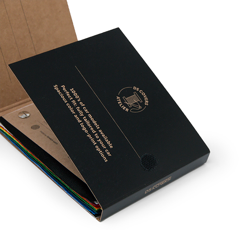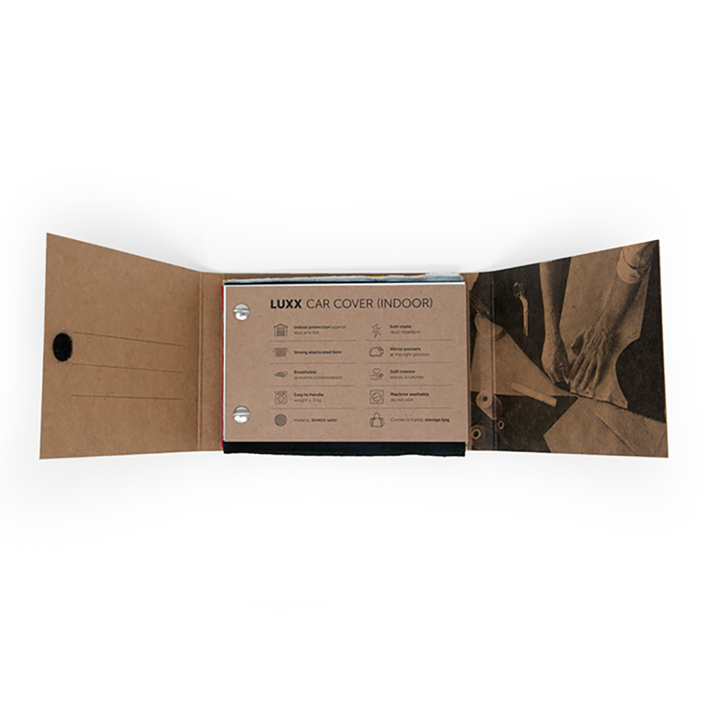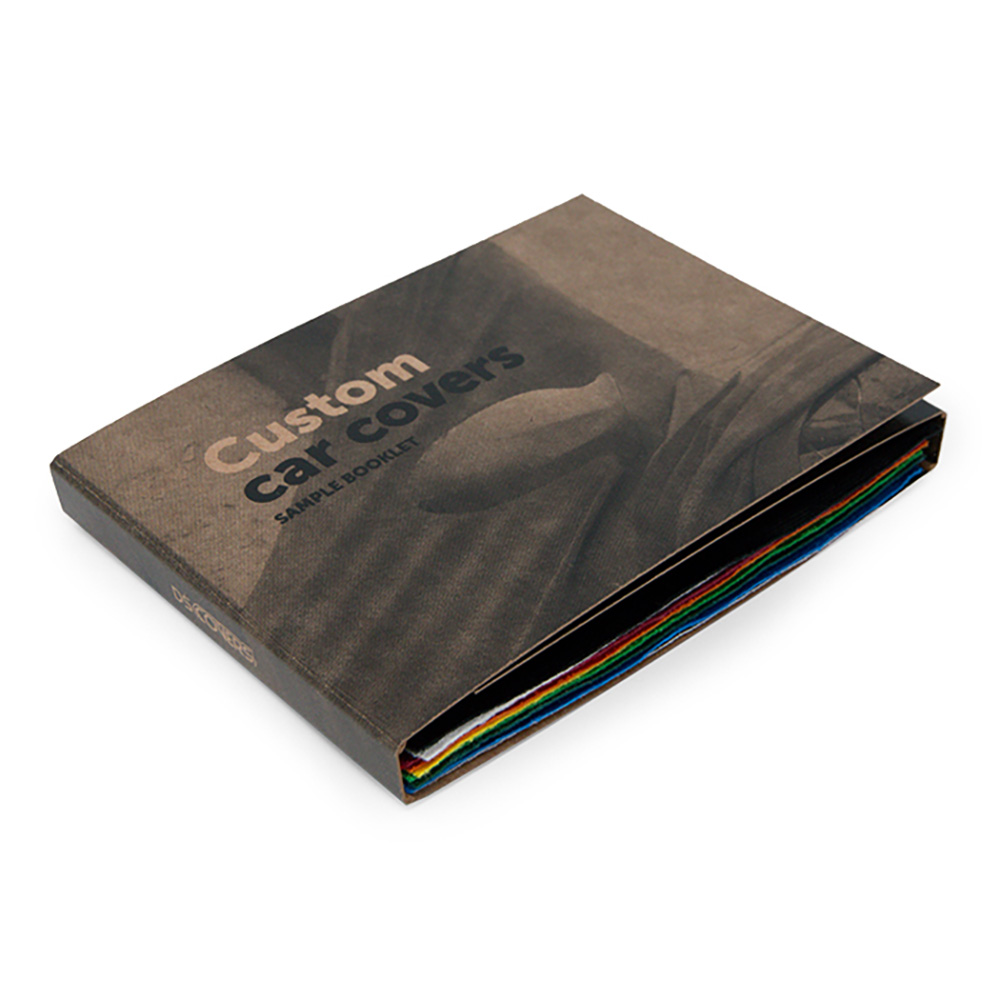 Iemand een autohoes op maat cadeau doen en de ontvanger zijn/haar autohoes zelf laten samenstellen? Geef dan dit 'SAMPLE booklet' cadeau.